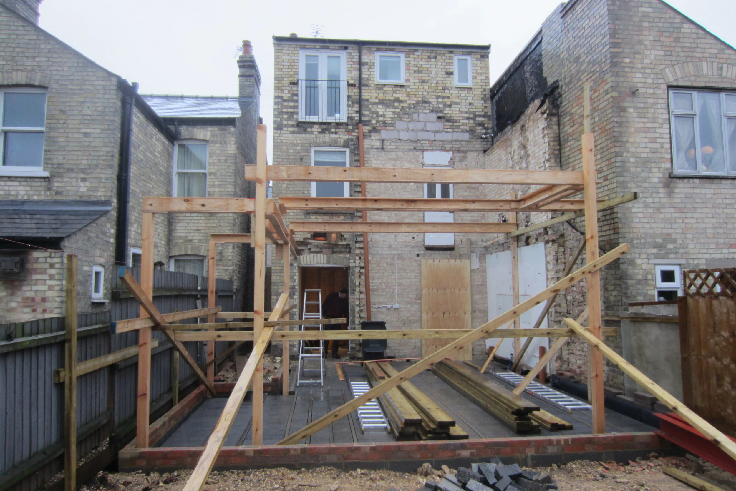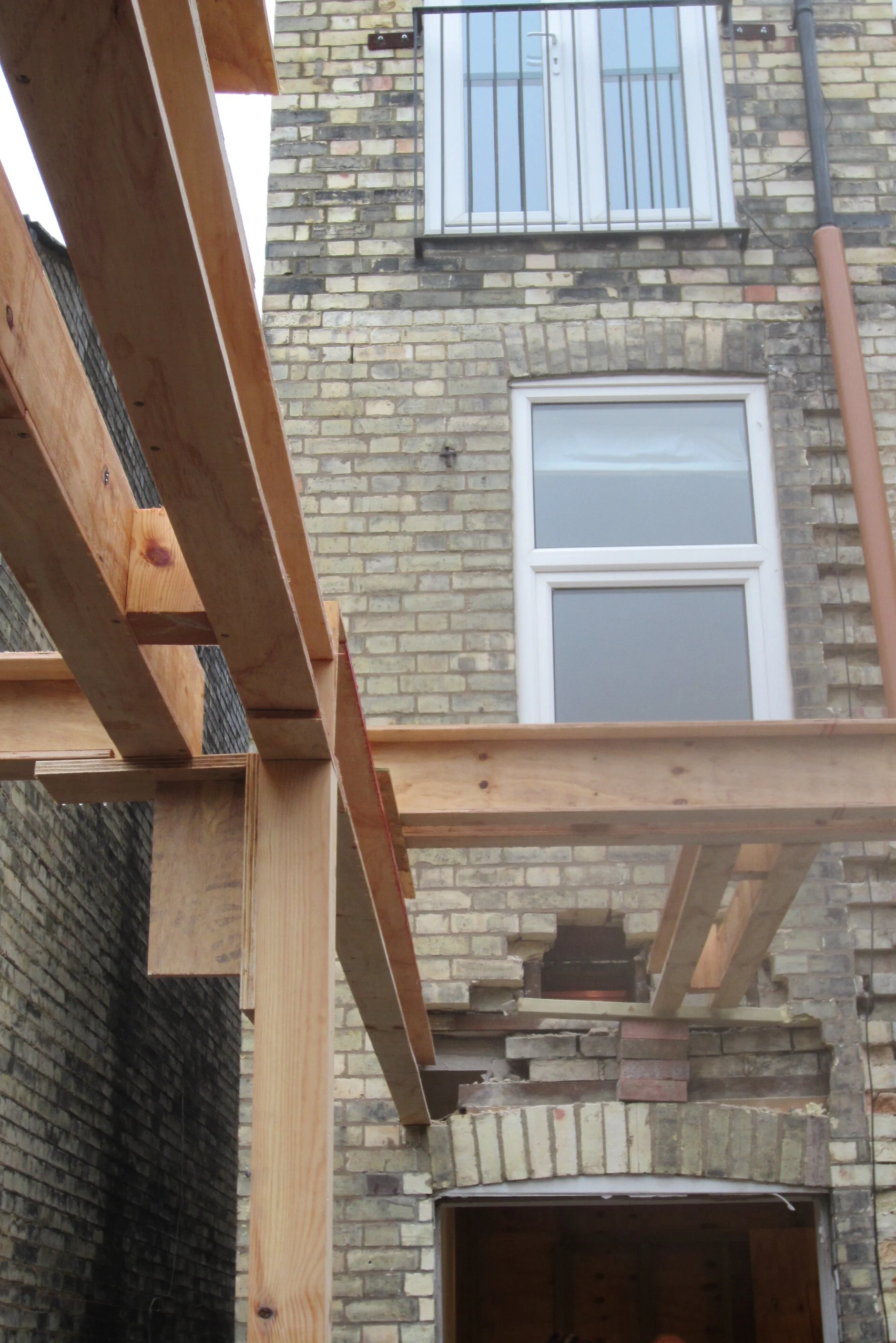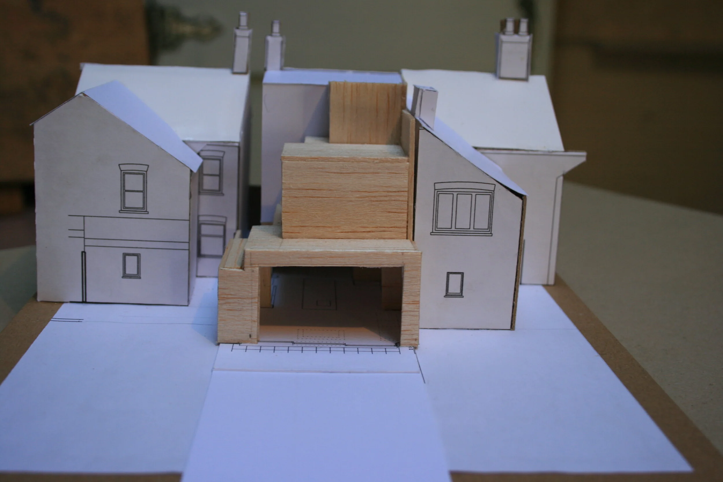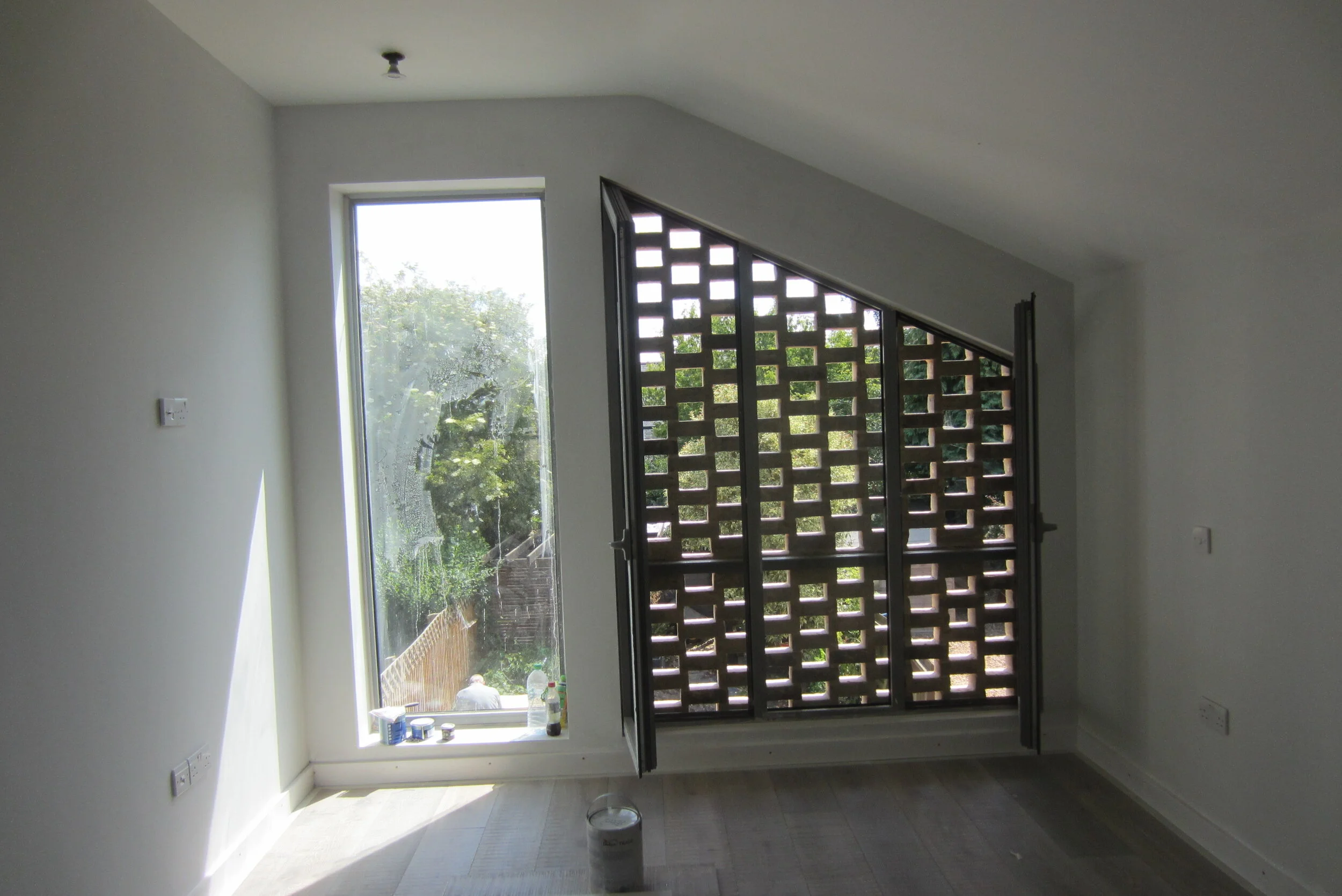 This house in Cambridge was doubled in size with a new master bedroom, bathrooms and utility room and a new open plan living room and kitchen on the ground floor with large glazed opening to courtyard and rear garden. The new rear elevation is detailed with distinctive areas of hit and miss brickwork for privacy, security, natural ventilation and shading to the south facing elevation. New stone kitchen and underfloor heating with hardwood flooring throughout and new lighting system has transformed the old house to a modern functional and light and warm space for modern living.